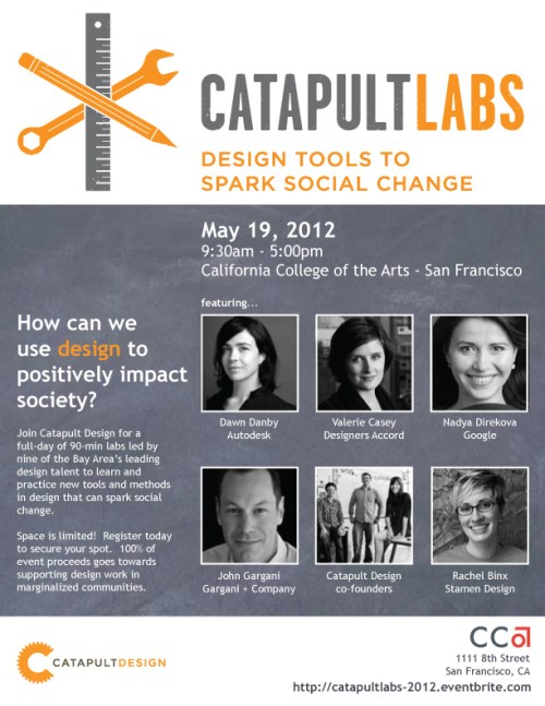 Interested in design for social change?  Curious about how to measure the social impact of your designs?  Check out my upcoming San Francisco workshop—Measuring Impact: Integrating Evaluation & Design–taking place on May 19 as part of CatapultLabs: Design Tools to Spark Social Change.