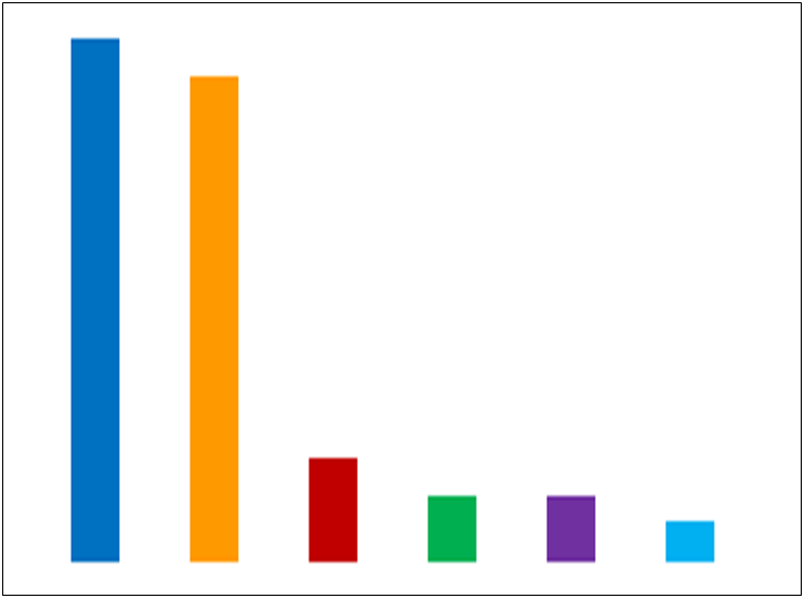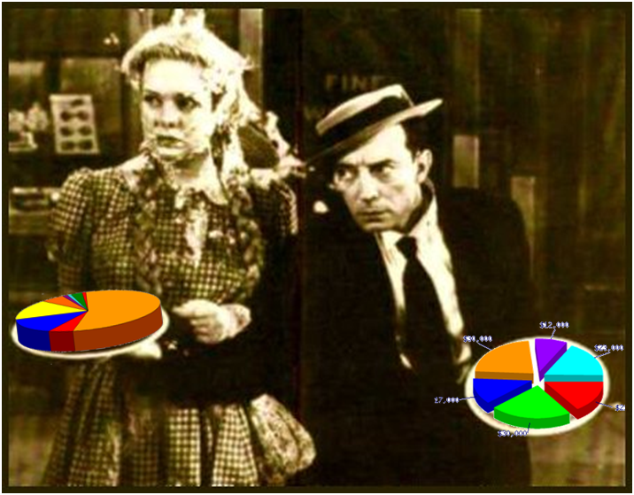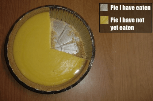 (2) Pie charts impede comparisons: People have trouble comparing pie slices by eye. Think you can? Here is a simple pie chart I constructed from the data in the NYT Magazine graph. Which slice is larger—orange or the blue?